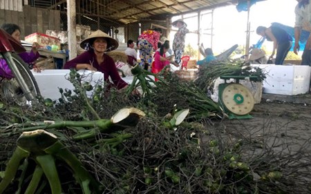 Một thương lái chuyên thu mua cau non cho biết mỗi ngày ông thu mua từ 200-400 kg cau buồng khắp nơi. "Tôi mua rồi bán lại cho một đại lý vận chuyển về TP HCM rồi bán sang Trung Quốc', ông khẳng định.