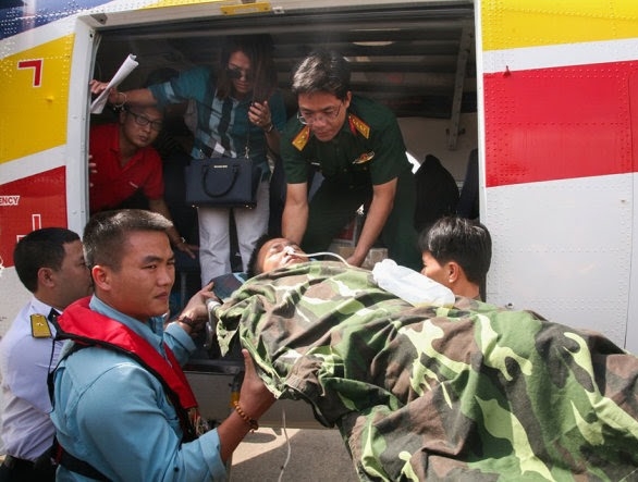 Thiếu tướng Nguyễn Hồng Sơn trực tiếp tham gia đưa bệnh nhân về đất liền chữa bệnh, cho biết đến 11h00 trưa 26/12 chiếc thủy phi cơ đã hạ cánh xuống sân bay Tân Sơn Nhất, tại đây xe cấp cứu đã nhanh chóng đưa Thiếu tá Lâm về bệnh viện quân y 175 để kịp thời chữa trị.