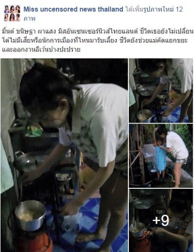 Gần một năm sau khi đăng quang cuộc thi Hoa hậu, trong loạt ảnh mới được ghi lại, Mint Kanistha đang phụ mẹ dọn dẹp nhà cửa.