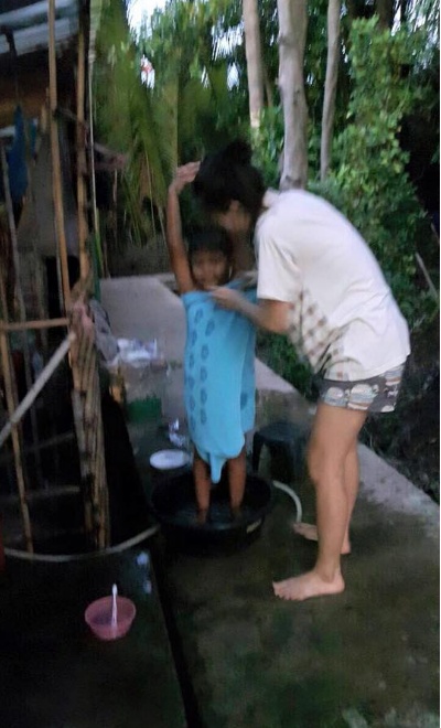 Cuộc sống sau khi đăng quang của Hoa hậu không có quá nhiều thay đổi, người đẹp vẫn vô cùng giản dị và tự tay tắm cho em. |