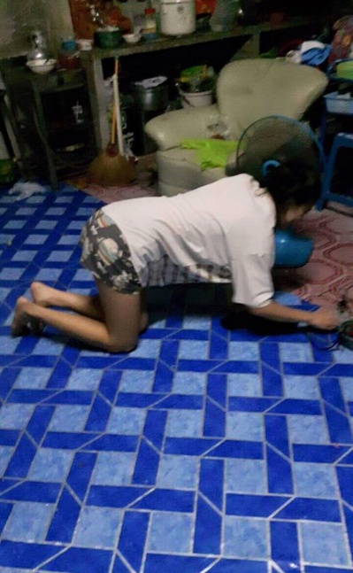 Mint Kanistha lau dọn căn nhà tuềnh toàng. |