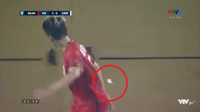 Ban đầu, Hồng Duy định cầm theo. Nhưng sợ vướng víu khi thi đấu, hậu vệ đang khoác áo HAGL quyết định ném mẩu giẩy lại bên ngoài sân.