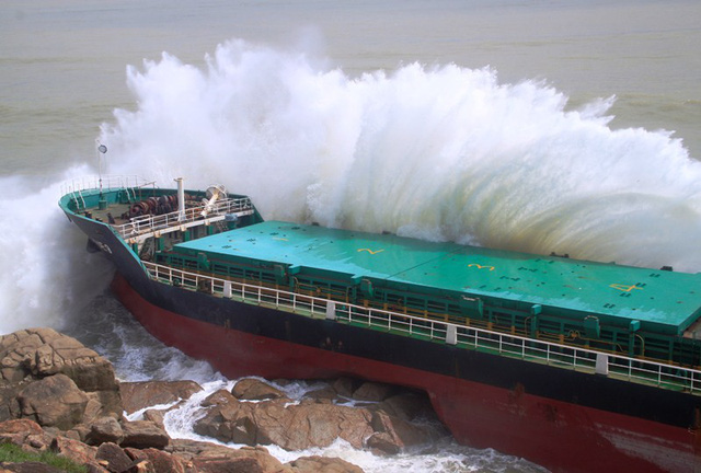 | Tàu gặp nạn sau cơn bão số 12. Ảnh VTC News |