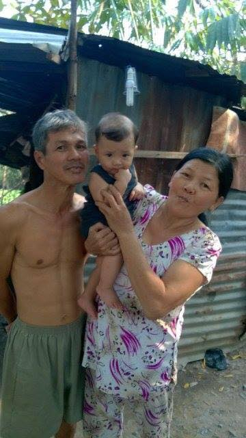 | Thầy giáo Lân bên vợ và cháu. |