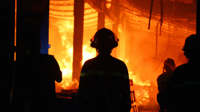 Lực lượng chữa cháy tiếp cận đám cháy. Ảnh: Tuổi Trẻ |