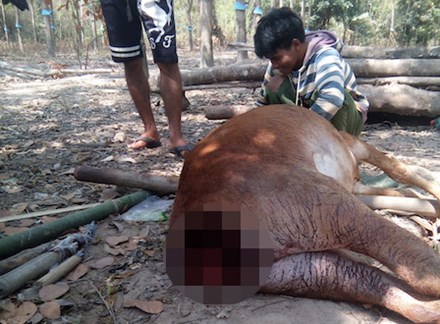 Nên đọcTrong đó, bò mẹ nằm chết cách bờ một nhánh suối chỉ mấy mét, phần đuôi bị khoét một lỗ to, đuôi bị mất. Còn con bê chừng 3 tháng tuổi nằm chết sát bờ suối Klah, phần bụng có một lỗ lớn, nội tạng thì không còn gì. Cũng theo A Loét thì cả hai mẹ con bò này đều bị vết cắn sâu ở phần cổ.
