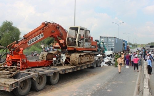 Khoảng 13h30’ chiều 27/9, xe container BKS: 51C-575.22 chở theo xe múc đang lưu thông qua cầu Phú Mỹ hướng từ quận 7 qua quận 2, TP.HCM. Khi xe vừa đổ dốc cầu (quận 2) thì bất ngờ tông vào đuôi xe tải BKS:60C - 132.19 đang chạy cùng chiều phía trước.
