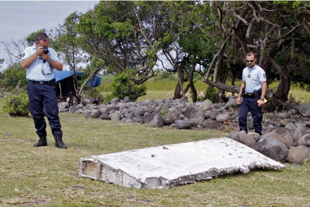 | Một mảnh cánh máy bay được tìm thấy trên đảo Reunion. Ảnh: AP |