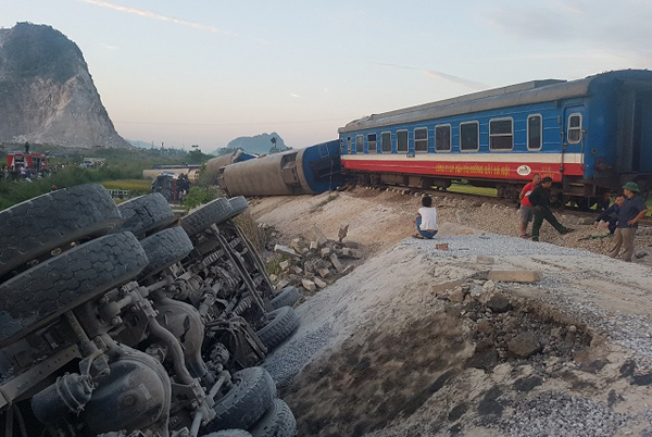 Vụ va chạm mạnh khiến chiếc xe tải bị hất văng, lật nghiêng bên đường; 8 toa tàu bị lật xuống ruộng. Số người thương vong ban đầu tạm xác định khoảng hơn 10 người.