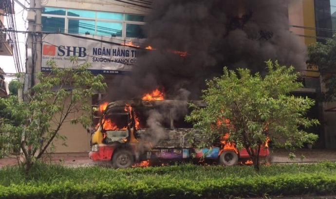 Theo nhiều người dân có mặt tại hiện trường cho biết, chiếc xe đang đi bỗng bốc khói rồi bén lửa, tài xế và hành khách trên xe vội vàng lao xuống dưới đường, may mắn là không có thiệt hại về người.