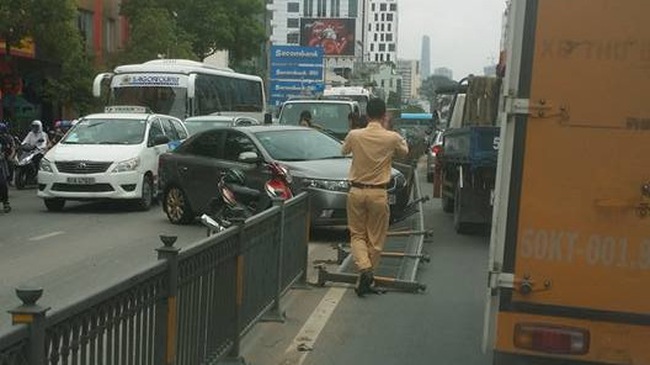 Nữ tài xế mất lái "hạ gục" hàng rào chắn giữa đường