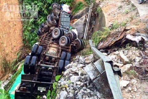 Ngày 6/10, tại quốc lộ 12A, đoạn chạy qua địa bàn xã Hóa Thanh, huyện Minh Hóa, (Quảng Bình), một chiếc xe container mang BKS Lào bất ngờ bị mất lái và lao xuống vực, tài xế may mắn thoát chết.