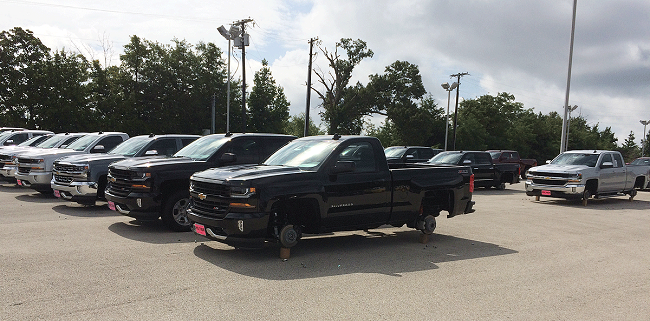 Chỉ trong 4 tiếng đồng hồ, toàn bộ bánh xe của 48 chiếc Chevrolet đã biến mất khỏi một đại lý.