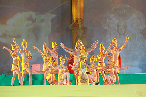 Huyền thoại Ponagar – tiết mục múa trong buổi tổng duyệt tối 9/6. Ảnh: Báo Khánh Hòa |