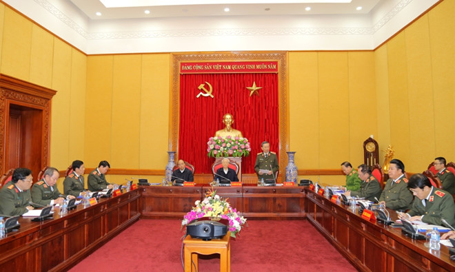Đến dự và chỉ đạo có Tổng bí thư Nguyễn Phú Trọng, Ủy viên Ban Thường vụ Đảng ủy Công an Trung ương; Thủ tướng Nguyễn Xuân Phúc, Ủy viên Ban Thường vụ Đảng ủy Công an Trung ương.