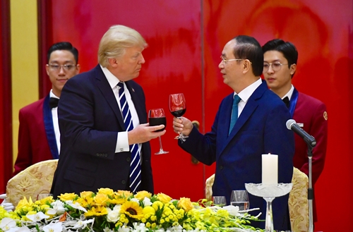 | Chủ tịch nước Trần Đại Quang và Tổng thống Donald Trump cụng ly. Ảnh: VnExpress |
