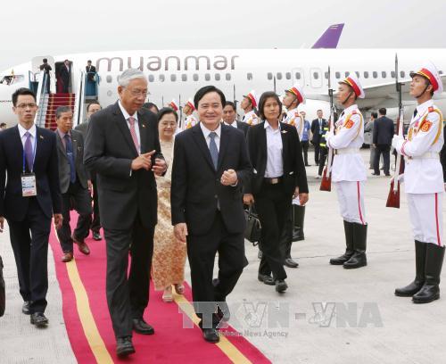 Nhận lời mời của Chủ tịch nước Trần Đại Quang, ngày 25/10, Tổng thống Cộng hòa Liên bang Myanmar Htin Kyaw và Phu nhân đã đến Hà Nội, bắt đầu chuyến thăm cấp Nhà nước tới Việt Nam từ ngày 26-28/10.