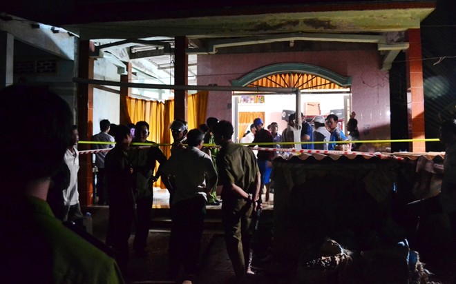 Hiện trường ban đầu ghi nhận hai cháu Kh. và H. nằm chết trên giường, còn chị Ng. nằm chết trước cửa nhà, gần đó có một con dao bầu còn dính máu.