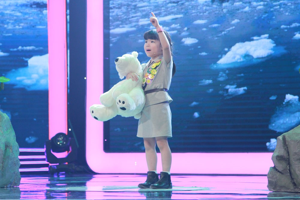 | Trong đêm thi Bán kết thứ 2 của Biệt tài tí hon được phát sóng tối 2/4, “thần đồng tiếng Anh” 5 tuổi bước ra sân khấu với tạo hình một nhà thám hiểm trong rừng sâu và mang đến bài thuyết trình về đề tài bảo vệ môi trường. Ngoài tài năng nói tiếng Anh trôi chảy, chính cô bé còn là người viết toàn bộ phần nội dung. Điều này khiến ban bình luận vô cùng kinh ngạc và thán phục.