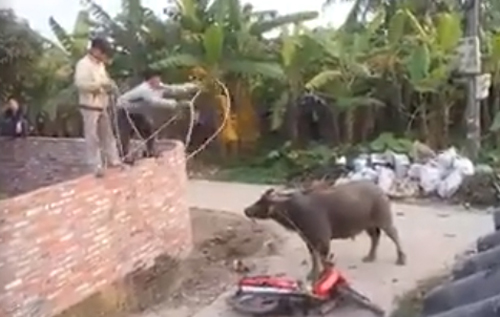 Liên quan đến vụ việc, trả lời báo Tri Thức Trực Tuyến, ông Nguyễn Văn Hường, Phó Chánh Văn phòng UBND huyện Ninh Giang cho biết, hơn 10 người dân đã phải lùa trâu điên vào ngõ, dùng điện mới khống chế được con trâu này.