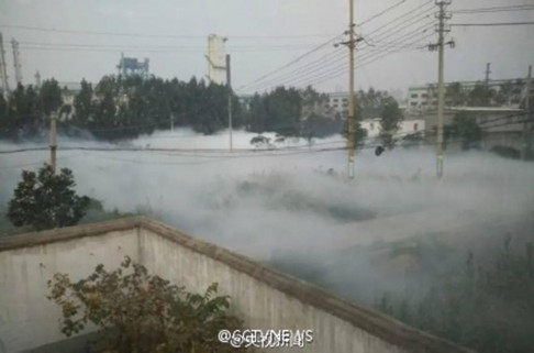 Sương trắng bao phủ làng sau vụ rò rỉ. Ảnh: ChinaFotoPress. |