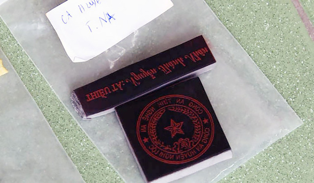 Một con dấu giả của CA huyện Nghi Lộc được Hương làm. Ảnh: Dân Trí |