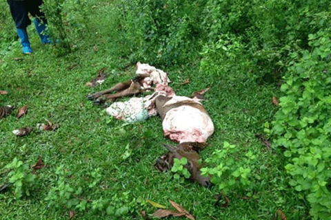 Tại hiện trường, con bò chỉ còn lại một số bộ phận. Sau đó, ông Dũng đã trình báo sự việc với chính quyền địa phương.