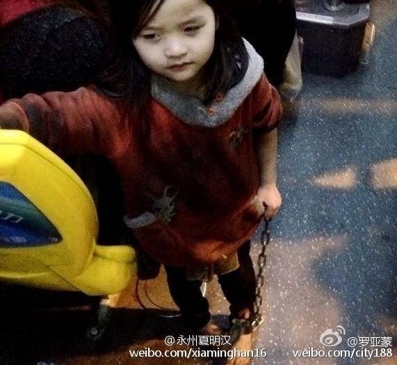 Sự việc xảy ra vào lúc 9h ngày 27/3 tại bến xe 115 của tỉnh Hồ Nam, Trung Quốc. Những hình ảnh về bé gái 4 tuổi đi chân trần và bị xích được một cư dân mạng có tên Tô Nam chụp lại và đăng tải lên weibo. Từ bức ảnh, người xem có thể nhìn thấy bé gái bị xích chân trong khi đang đi cùng 1 người phụ nữ tầm 30 tuổi.