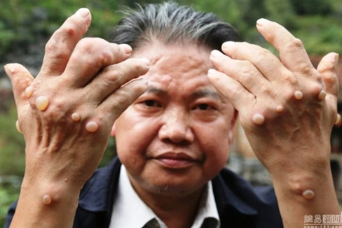 Gần đây, dân cư mạng Trung Quốc xôn xao trước thông tin 20 người dân ở làng Nhã Long, Hà Trì, Quảng Tây, Trung Quốc bị mắc một căn bệnh lạ khiến xương bị biến dạng và mọc những khối u, bóng nước khắp cơ thể.