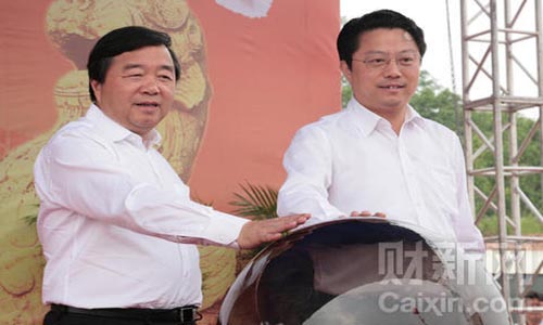 Dương Vệ Trạch (phải) và cựu thị trưởng Nam Kinh Quý Kiến Nghiệp trong lễ khởi công xây dựng một đường cao tốc qua thành phố Nam Kinh tháng 5/2011