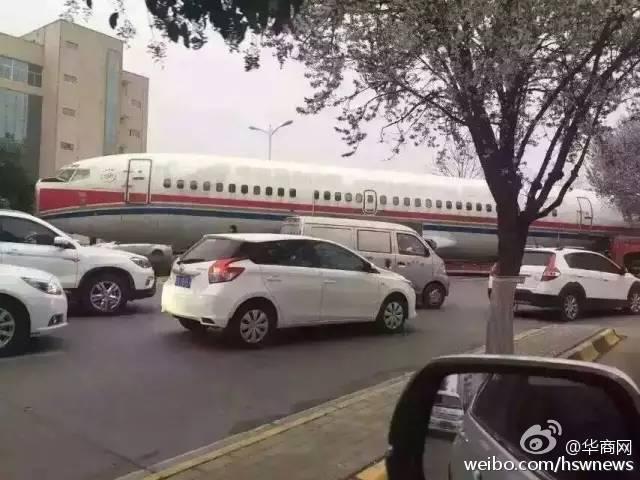 Chiếc máy bay án ngữ giữa đường khiến giao thông tê liệt hơn 1 giờ. Ảnh: NetEase/ Weibo |