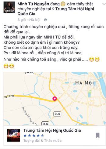Trên trang cá nhân riêng của mình chiều ngày 31/10/2016, Minh Tú bất ngờ chia sẻ dòng trạng thái đầy bất mãn, bức xúc khi bị BTC yêu cầu đổi trang phục đã được thử trước đó cho một người đẹp khác: "Chương trình chuyên nghiệp quá, fitting (khớp chương trình) xong rồi còn đổi đồ qua lại. Mà phải lựa ngay tên Minh Tú để đổi. Không biết có ý định ếm ỉ gì mình không? Cho con cầu xin qua khỏi con trăng này. Đã là hoa rồi, diễn cũng ở vị trí là hoa. Như nào mà chẳng tỏa sáng, việc gì phải...". Theo lối nói ám chỉ thì không khó để nhận ra nhân vật Minh Tú nhắc đến khi cùng tham gia chương trình chính là Lan Khuê.