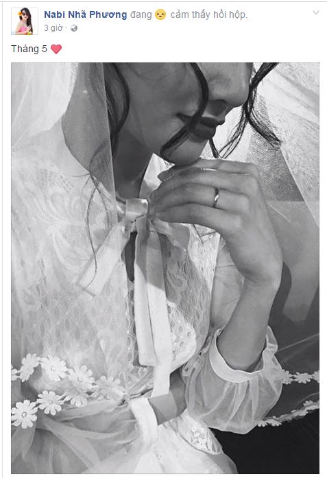| Nhã Phương từng khoe ảnh đeo nhẫn, mặc váy cô dâu trên trang cá nhân. |