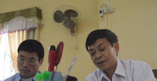 | Lãnh đạo xã Quang Bình trong buổi làm việc với PV về câu chuyện đang gây bức xúc ở trường mầm non Quang Bình. |