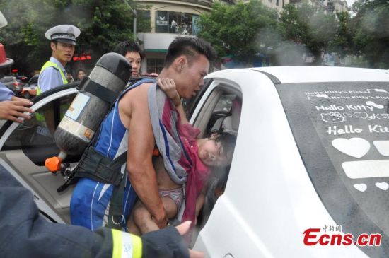 1 em nhỏ được giải cứu từ tòa nhà đang cháy dữ dội. Ảnh: China News Service/Ou Yufan |