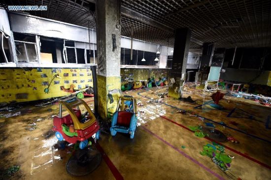 | Hiện trường bên trong trường mầm non Donghu sau vụ hỏa hoạn. Ảnh: Xinhua/Jiang Kehong |