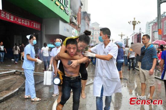 | Người mắc kẹt trong tòa nhà được giải cứu. Lửa bốc lên vào khoảng 11h27 sáng 16/9 tại tòa nhà Juchi Plaza ở thành phố Ninh Đức, tỉnh Phúc Kiến. Ảnh: Xinhua/Ou Yufan |