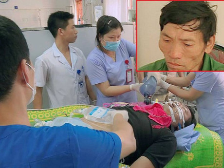 | Đại úy Lường Quang Học được cấp cứu tại bệnh viện sau khi bị Và Vả Mua (ảnh nhỏ) tông xe trọng thương. Ảnh: Công an tỉnh Sơn La |