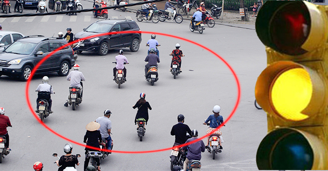 Khi đèn vàng nhiều người vẫn cố tình rồ ga để cố vượt rất nguy hiểm. Ảnh: Internet |