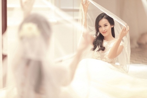 Tú Vi xinh đẹp, rạng ngời trong chiếc váy cô dâu khiến Văn Anh không thể rời mắt. Ảnh: NVCC |