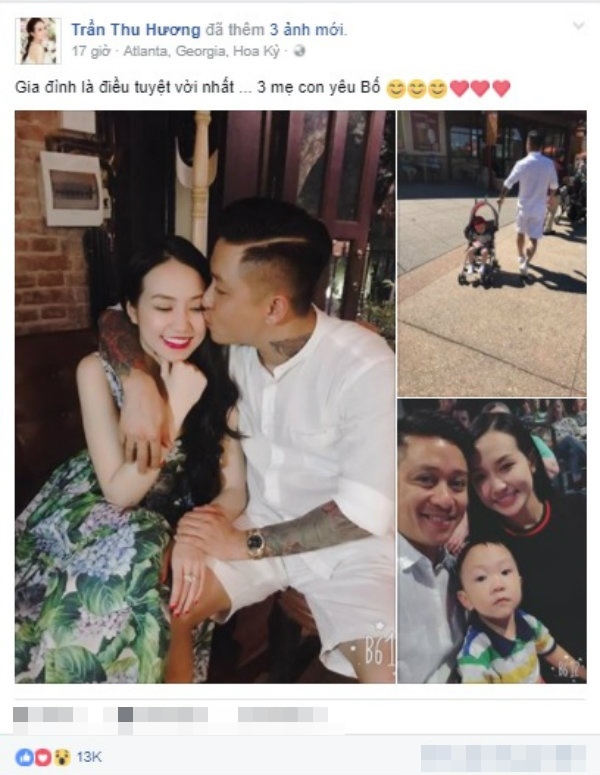 Sau khi những bức ảnh của chồng chụp với gái lạ trong quán bar được lộ diện, vợ Tuấn Hưng đã đăng hình ảnh tình tứ bên chồng trên trang cá nhân cùng lời chia sẻ: "Gia đình là điều tuyệt vời nhất ... 3 mẹ con yêu bố".