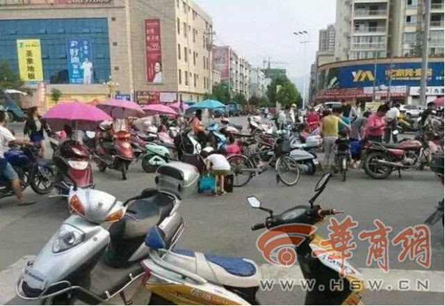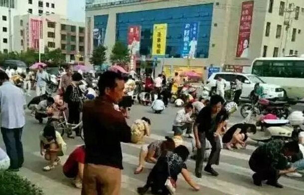 Người dân ở thành phố Hán Trung, tỉnh Thiểm Tây, Trung Quốc đổ xô xuống đường để nhặt "vàng". |