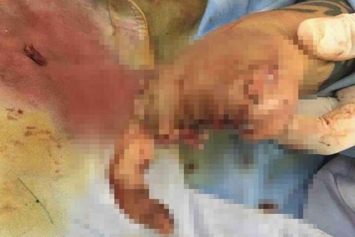 Bàn tay của nạn nhân sau ca phẫu thuật. Ảnh: Lao Động |