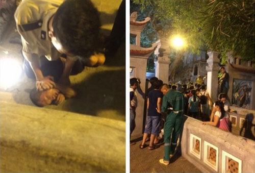 Bất ngờ, người này la hét, quát tháo rồi leo lên Tháp Bút đập phá lọ hoa và bát hương. Ngay lập tức, lực lượng bảo vệ Hồ Gươm và cảnh sát khu vực đã có mặt và khống chế được người đàn ông này.