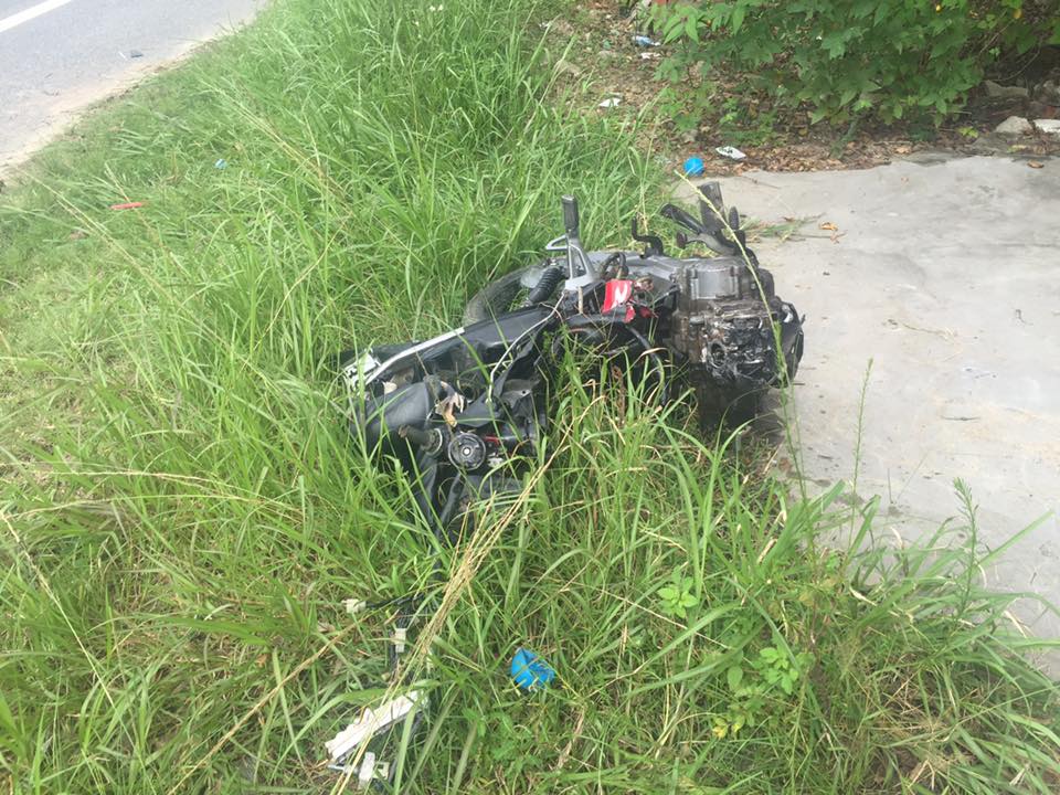 Xe máy nạn nhân cũng không còn nhận ra hình dáng. Ảnh: Otofun |