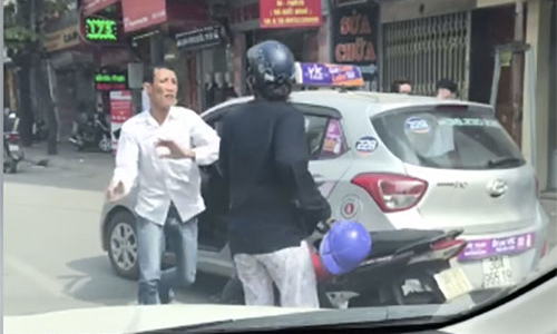 Sau khi xảy ra va chạm giao thông với người phụ nữ đi xe máy, tài xế taxi hùng hổ lao vào đánh và cãi nhau gây náo loạn khu phố.