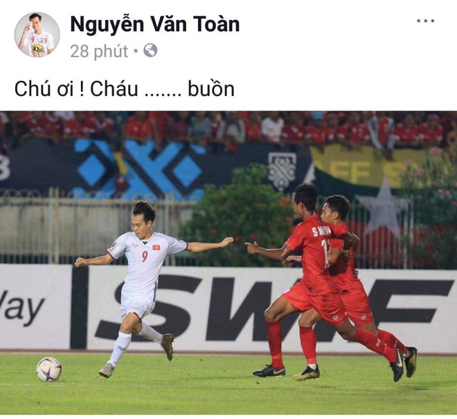 Sau trận đấu với đội tuyển Myanmar, Văn Toàn đã lên mạng xã hội than buồn vì bàn thắng hụt của mình trên sân.