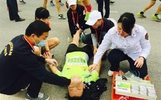 Một vận động viên đã bất tỉnh khi tham gia cuộc đua marathon tại Trung Quốc. Ảnh: SCMP |