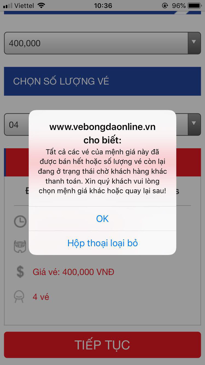 Trước đó vào sáng ngày 28/11, nhiều CĐV than phiền rằng tất cả các mệnh giá vé đều báo đã hết hoặc chờ thanh toán. Ngoài ra, hàng loạt người khác thậm chí còn không thể truy cập trang web bán vé.