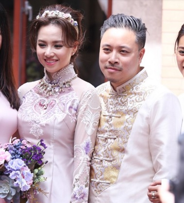 Victor Vũ và Đinh Ngọc Diệp hạnh phúc trong lễ ăn hỏi. Ảnh internet |
